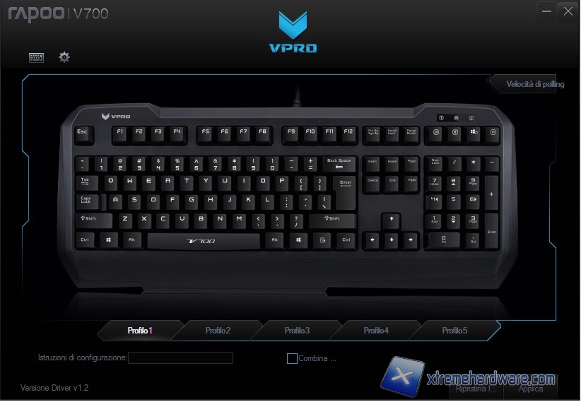 Il software ha un’interfaccia grafica che segue la colorazione nero/celeste, caratteristica dei prodotti e del brand VPRO Gaming. L’interfaccia è molto “scarna”, non abbiamo un software pieno di voci o menù ma il tutto è raggruppato in poche voci e menù.