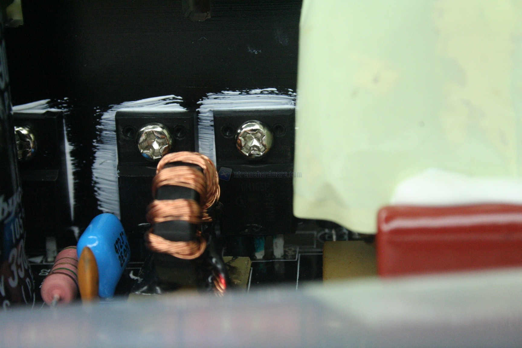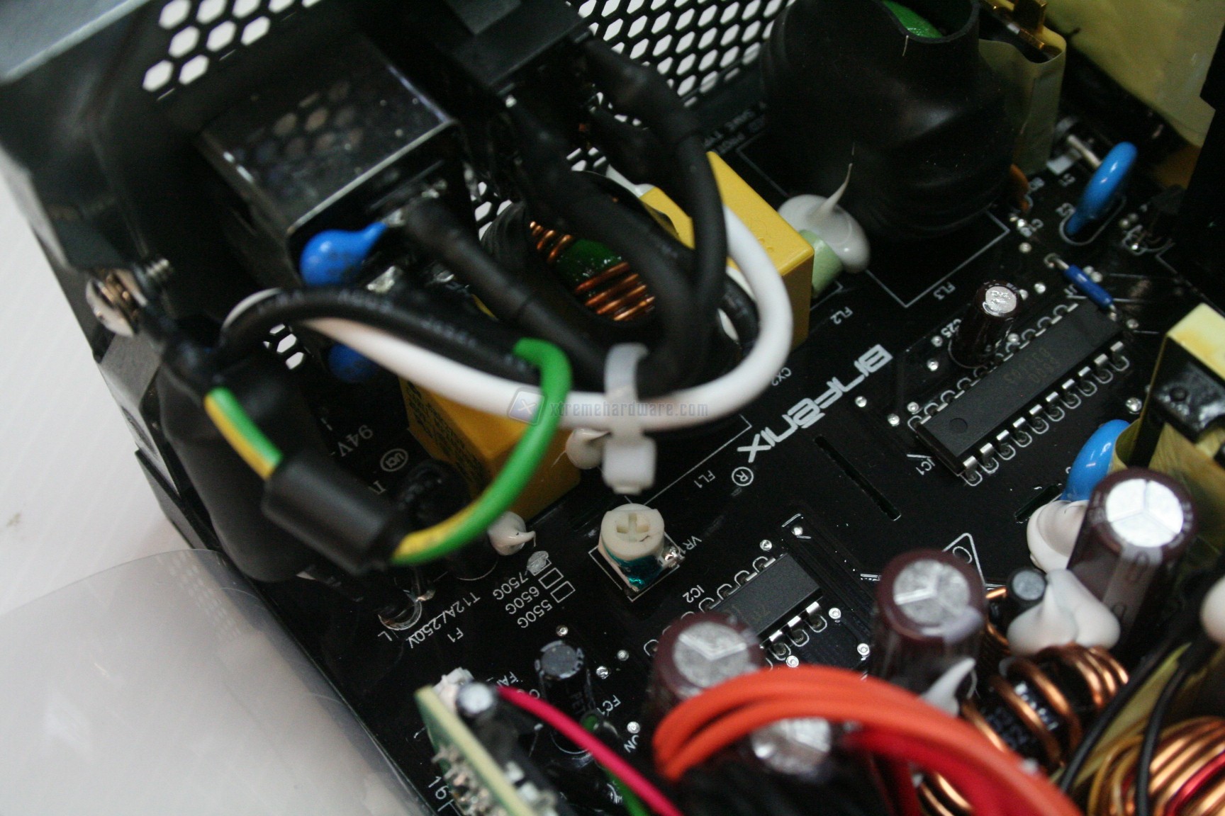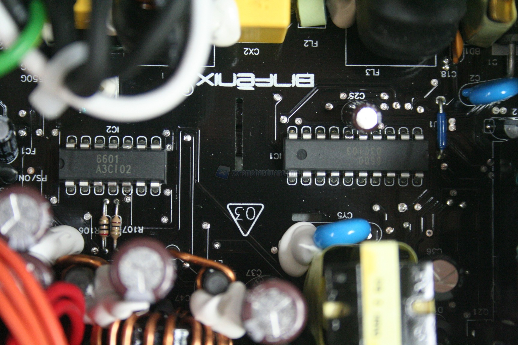 NOTA GENERICA: i condensatori del circuito primario agiscono come buffer e sono molto importanti perché la loro presenza aiuta a proteggere il nostro alimentatore ed il computer stesso da pericolosi sbalzi di tensione e generalmente vengono collegati in parallelo al fine di sommare le singole capacità o, alternativamente, per modelli meno potenti. La tipologia dei condensatori utilizzata è quindi molto importante perché la vita di queste componenti si dimezza in base all’aumento della temperatura di ogni 10 gradi Celsius, sotto un normale carico di lavoro; questo significa che utilizzando modelli di condensatori capaci di gestire, senza il minimo problema anche 105 gradi Celsius, la durata della loro vita potrebbe essere addirittura pari al doppio rispetto a modelli standard da 85 gradi Celsius! Questo fattore è uno dei più sponsorizzati nel campo degli SMPS, non a caso ci si vanta della presenza di condensatori giapponesi nella propria unità, capaci appunto di sopportare temperature maggiori e quindi prolungare la vita stessa dell’unità.