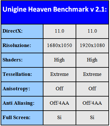 Il benchmark è stato testato in DX11 con Tessellation Extreme. A seguire le impostazioni nel dettaglio: