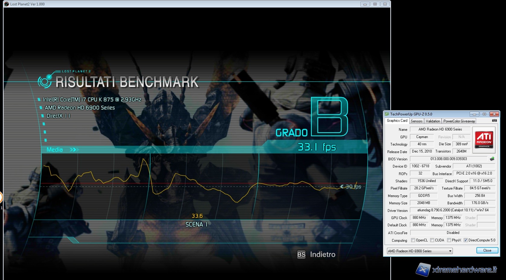 Game che notoriamente predilige l'architettura Nvidia, è possibile notare un certo distacco tra le due rivali. La HD 6970 genera frame non molto distanti dalla Gigabyte GTX 460 Super Overclock, che come abbiamo detto ha frequenze superiori ad una normale GTX 460.